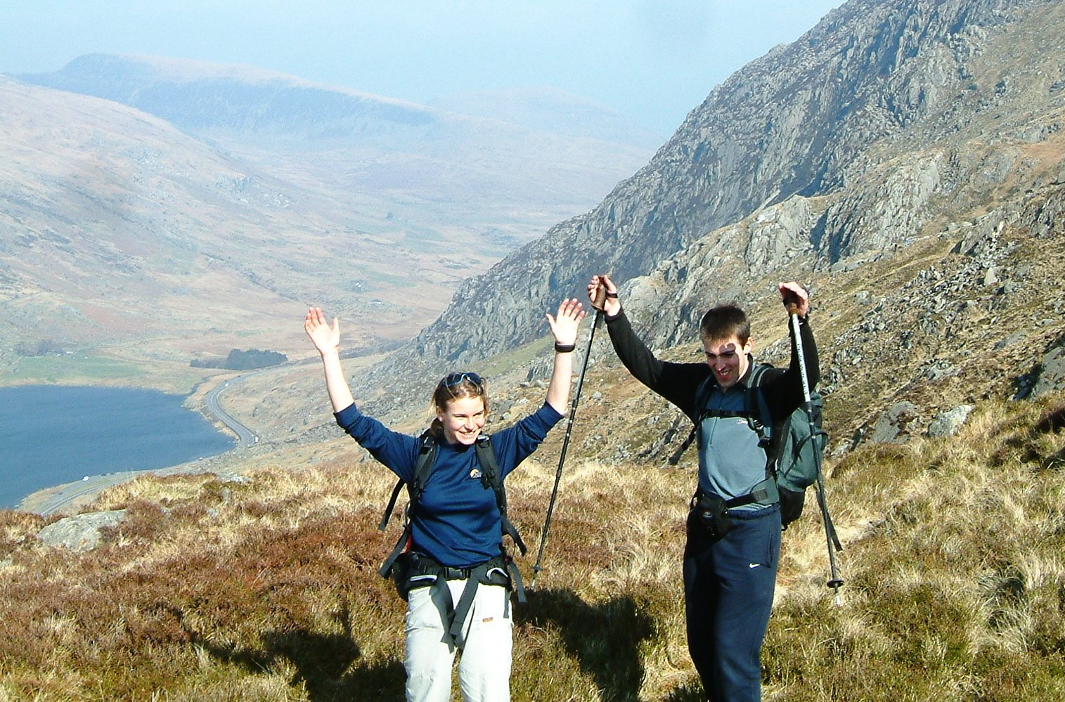 ⇐ PreviousBecky and Dave heading down, with Pen yr Ole Wen behind